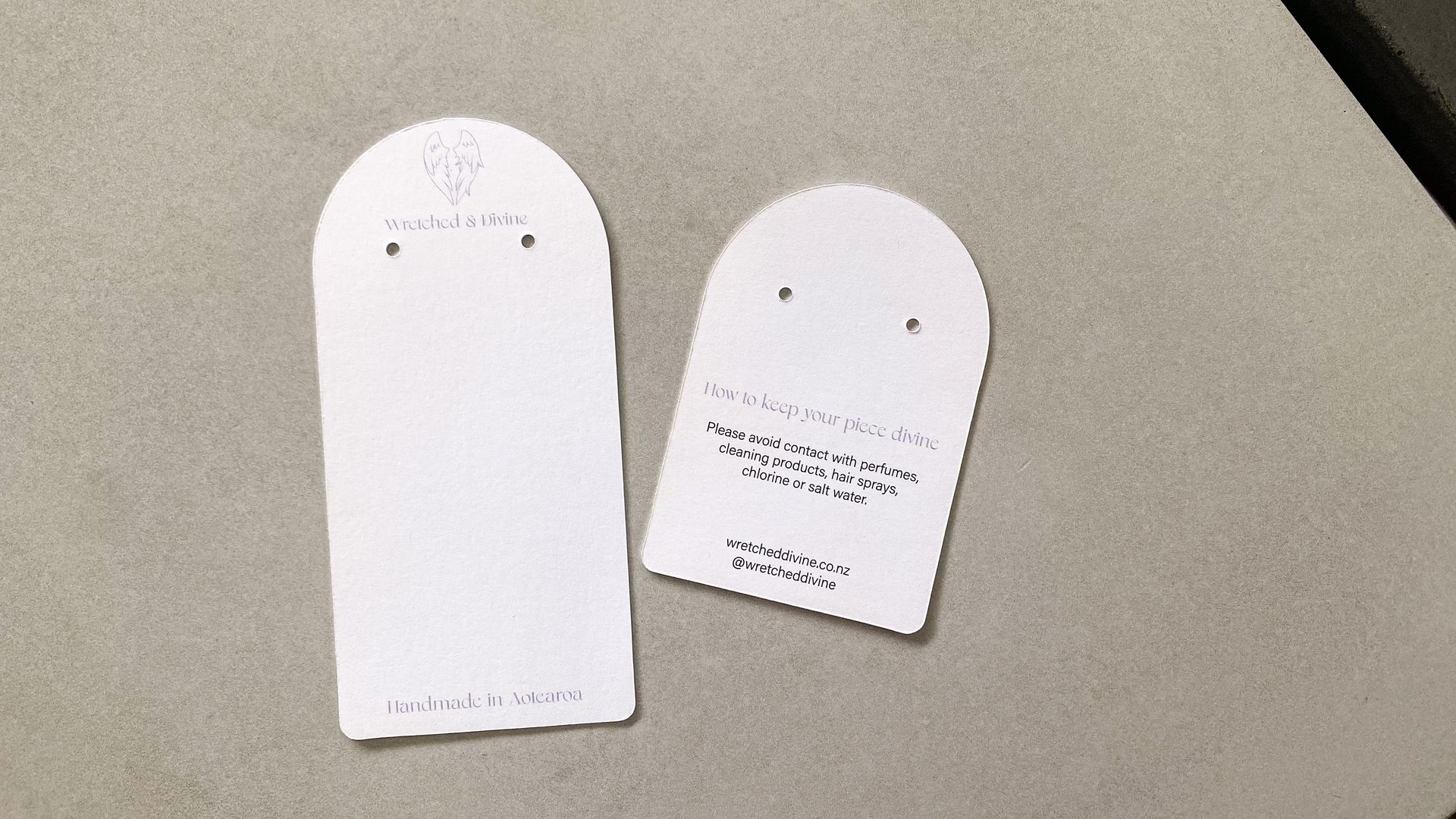 Finally, working with a commercial printer to create custom jewellery cards was a very exciting part of this journey. We landed on a simple yet stylish design that suits this brand nicely. Together with the other packaging elements, they keep the pieces divine.